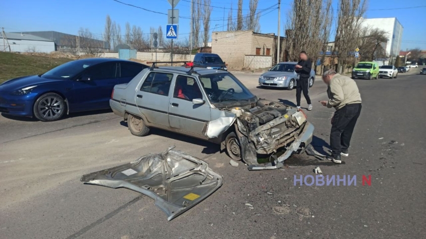 Днем во вторник, 10 марта, на пересечении улиц Троицкой и 2-ой Набережной в Николаеве столкнулись легковой автомобиль «Таврия» и самосвал на базе автомобиля КамАЗ.