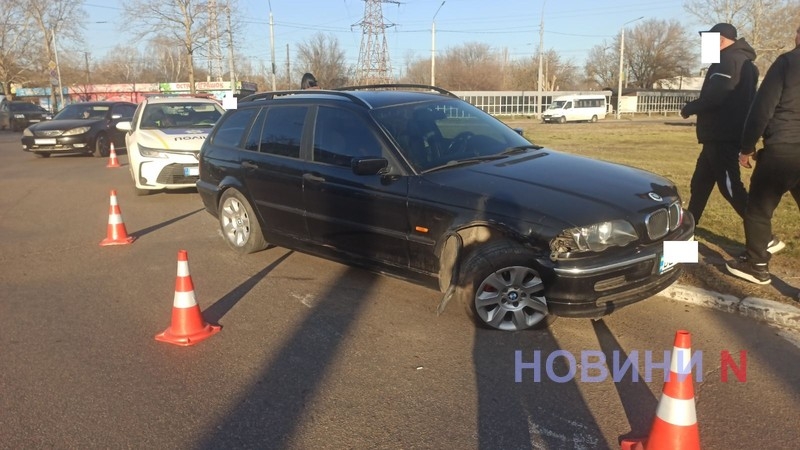 BMW вылетела на кольцо в результате ДТП с грузовиком в Николаеве