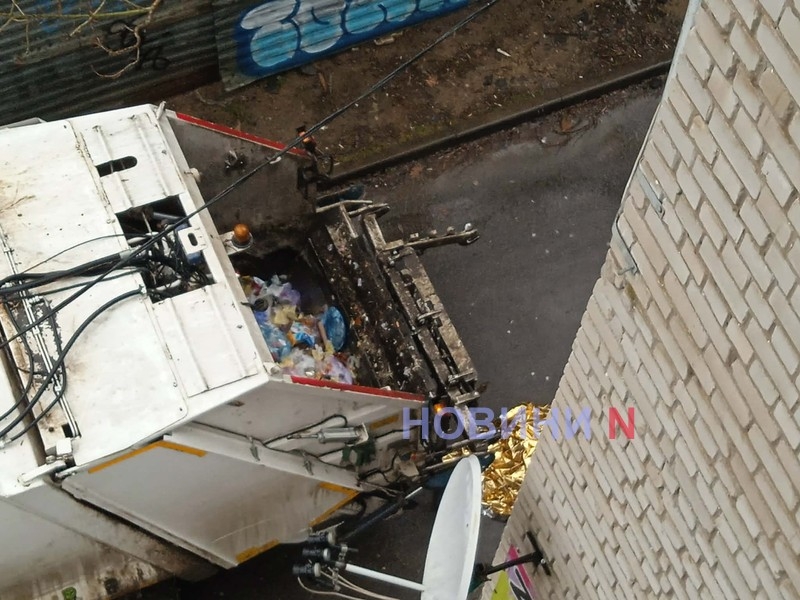 По предварительной информации мусоровоз КП «Николаевкоммунтранс» двигался задним ходом по въезду во дворы в районе многоэтажного дома, расположенного по адресу проспект Центральный, 148.