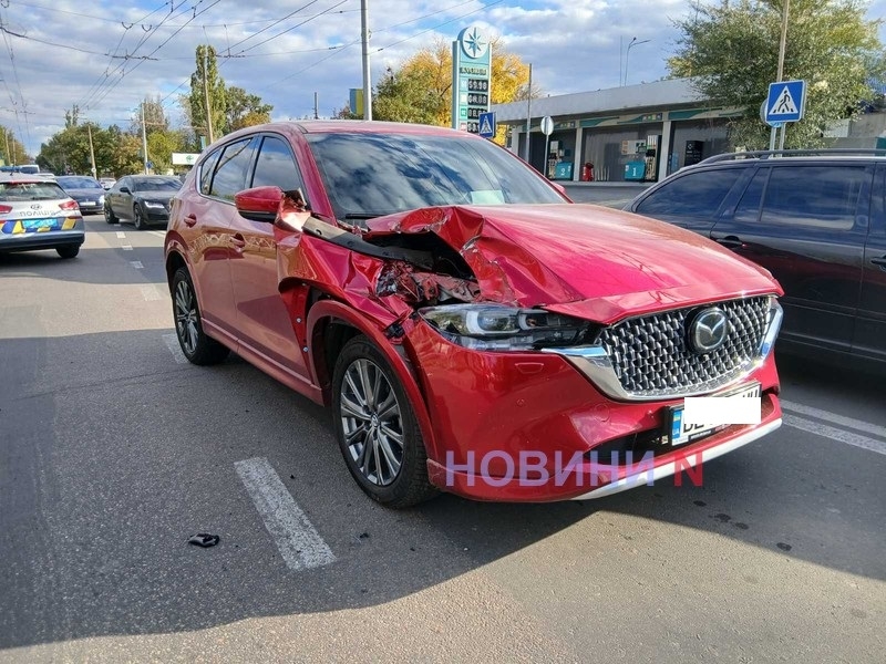 Днем в среду, 15 октября, на Херсонском шоссе в Николаеве столкнулись автомобили Mazda CX-5 и грузовик MAN.