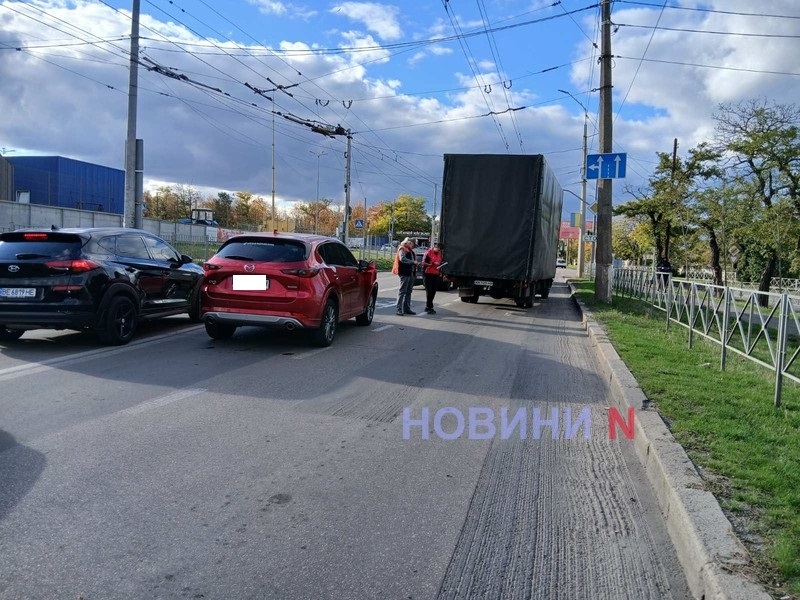 Столкнулись «Мазда» и грузовик в Николаеве: на Херсонском шоссе затор