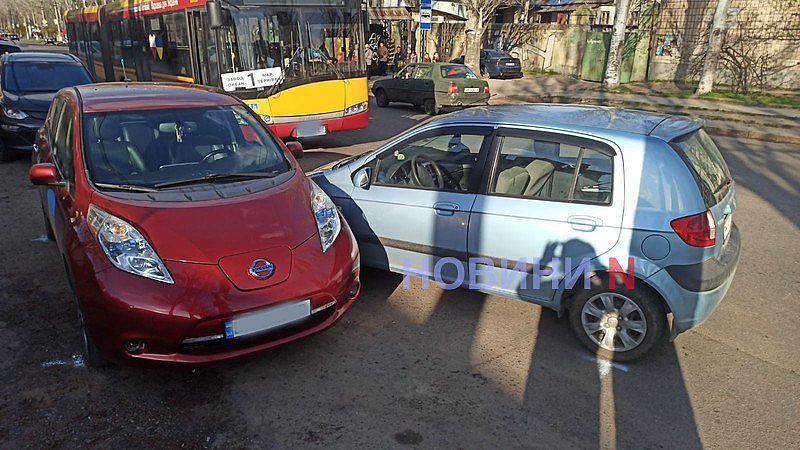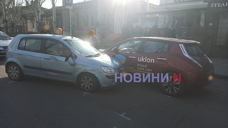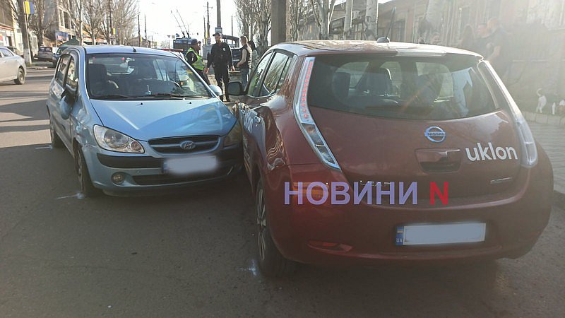 В Николаеве 4 апреля автомобиль Hyundai Getz врезался в Nissan Leaf (такси Uklon).