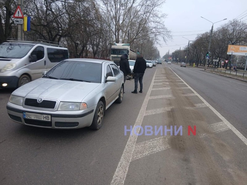 «Ланос» врезался в «Шкоду» в Николаеве: на проспекте пробка (фото)