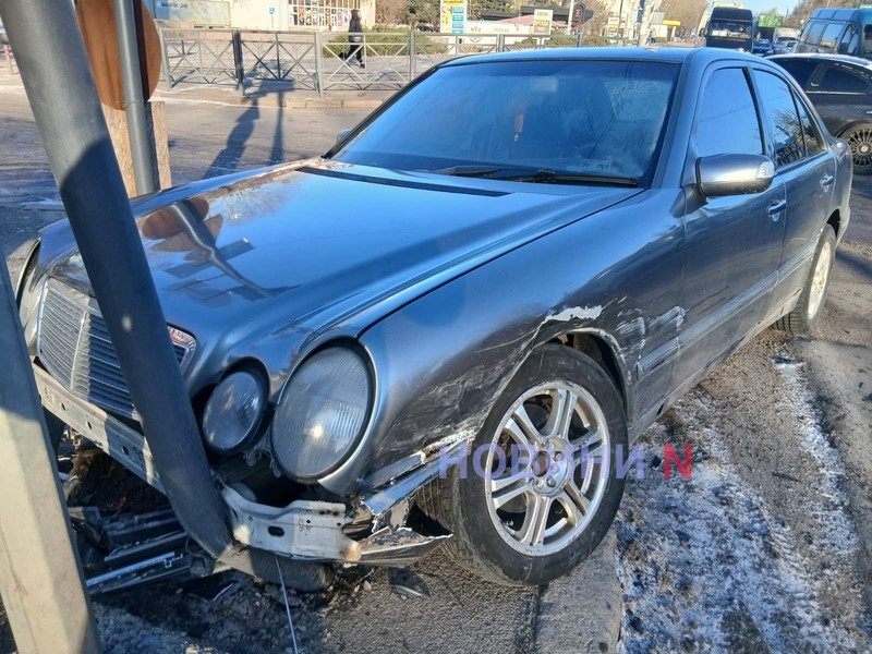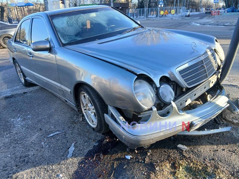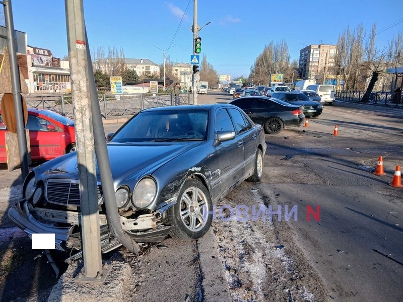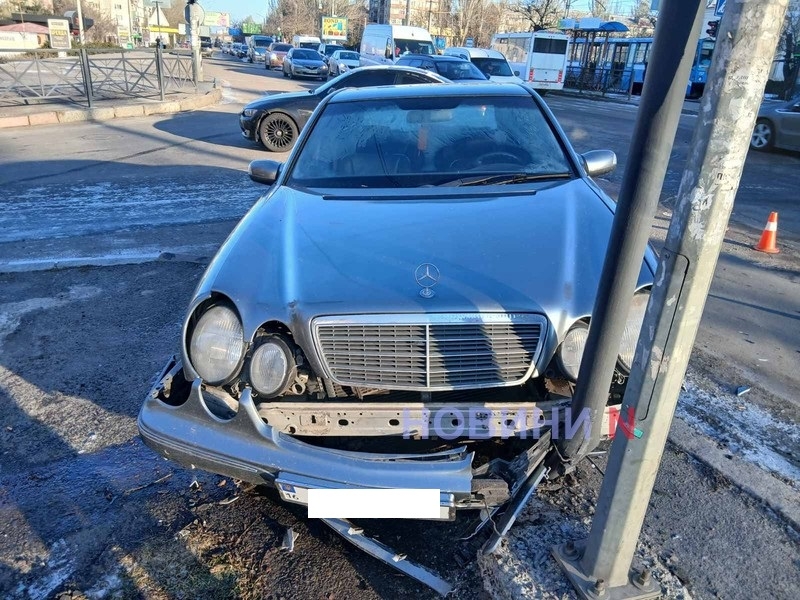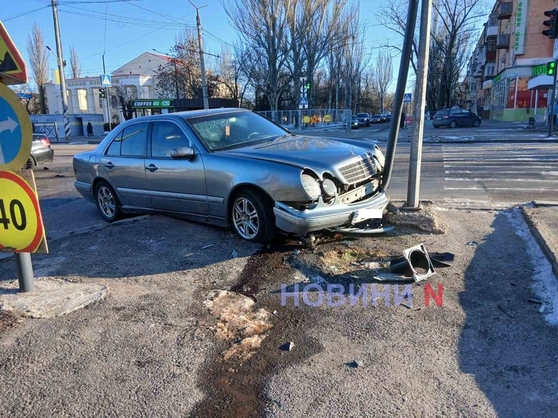 «Мерседес» снес светофор после столкновения с «БМВ» в Николаеве