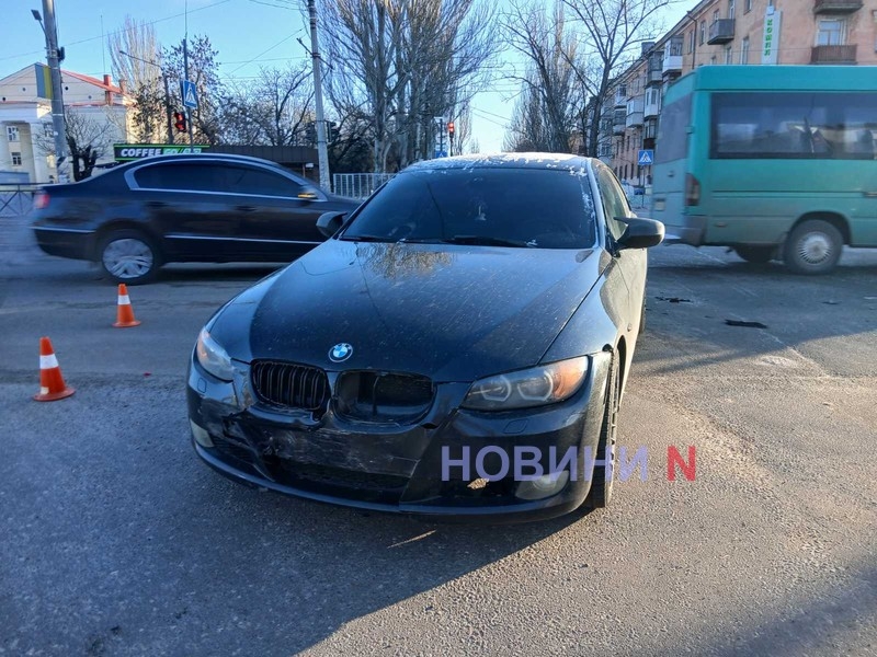Утром в понедельник, 9 февраля, на перекрестке Богоявленского (Октябрьского) проспекта и ул. Театральной (Васляева) в Николаеве столкнулись BMW и Mercedes.