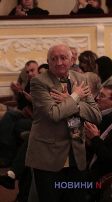 В пятницу, 10 октября, в рамках XIV международного фестиваля «Homo Ludens» на большой сцене Николаевского академического художественного драматического театра артисты Независимого проекта «Театральная биржа» показали спектакль «Шестое чувство». Режиссер – Народный артист Украины Лев Сомов.