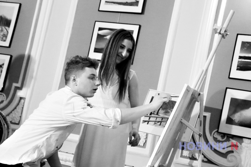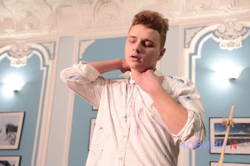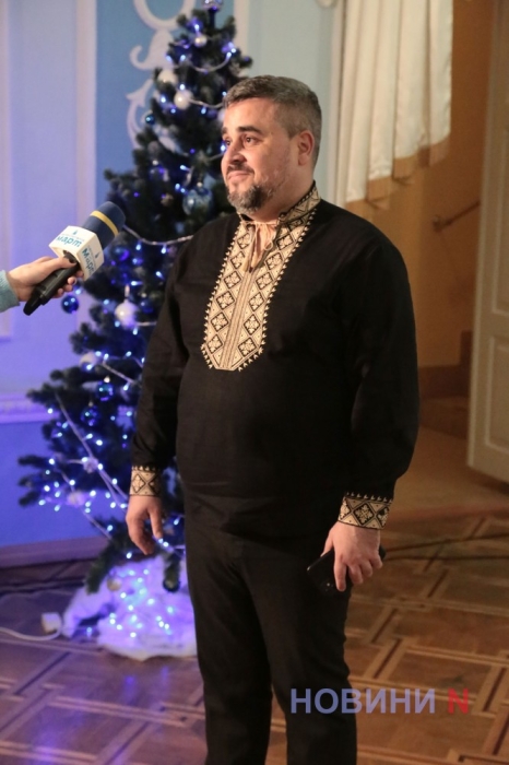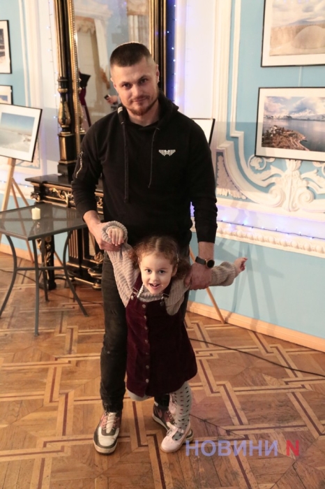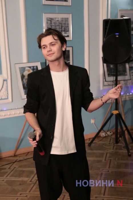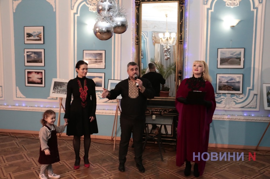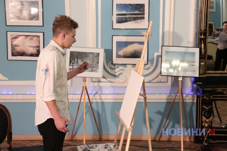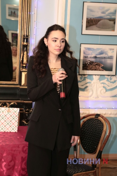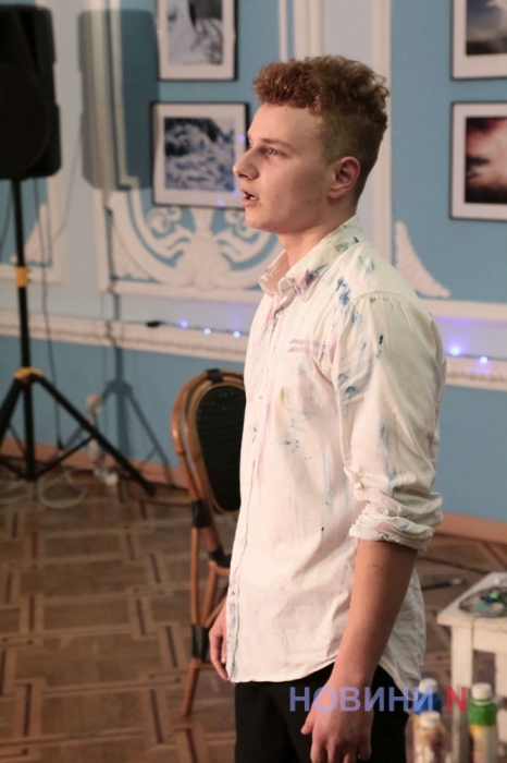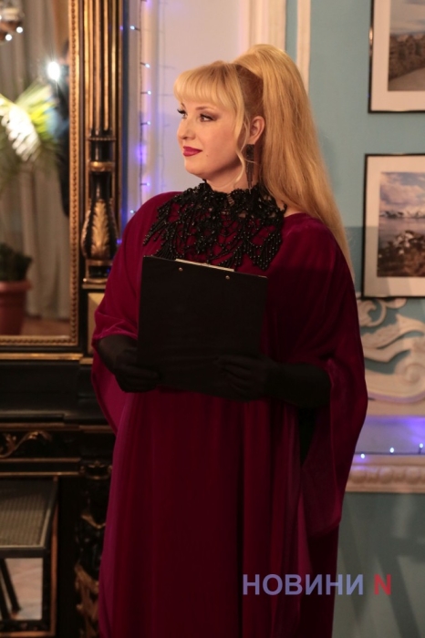 Приятным сюрпризом стало выступление студентов Николаевского профессионального колледжа культуры и искусств, которые показали две небольших сценки – одна была посвящена вдохновению художника и его Музе, а во второй утверждался особенный, семейный дух зимних праздников. Также для присутствующих выступили артисты театра Надежда Шелест и Богдан Мельников.