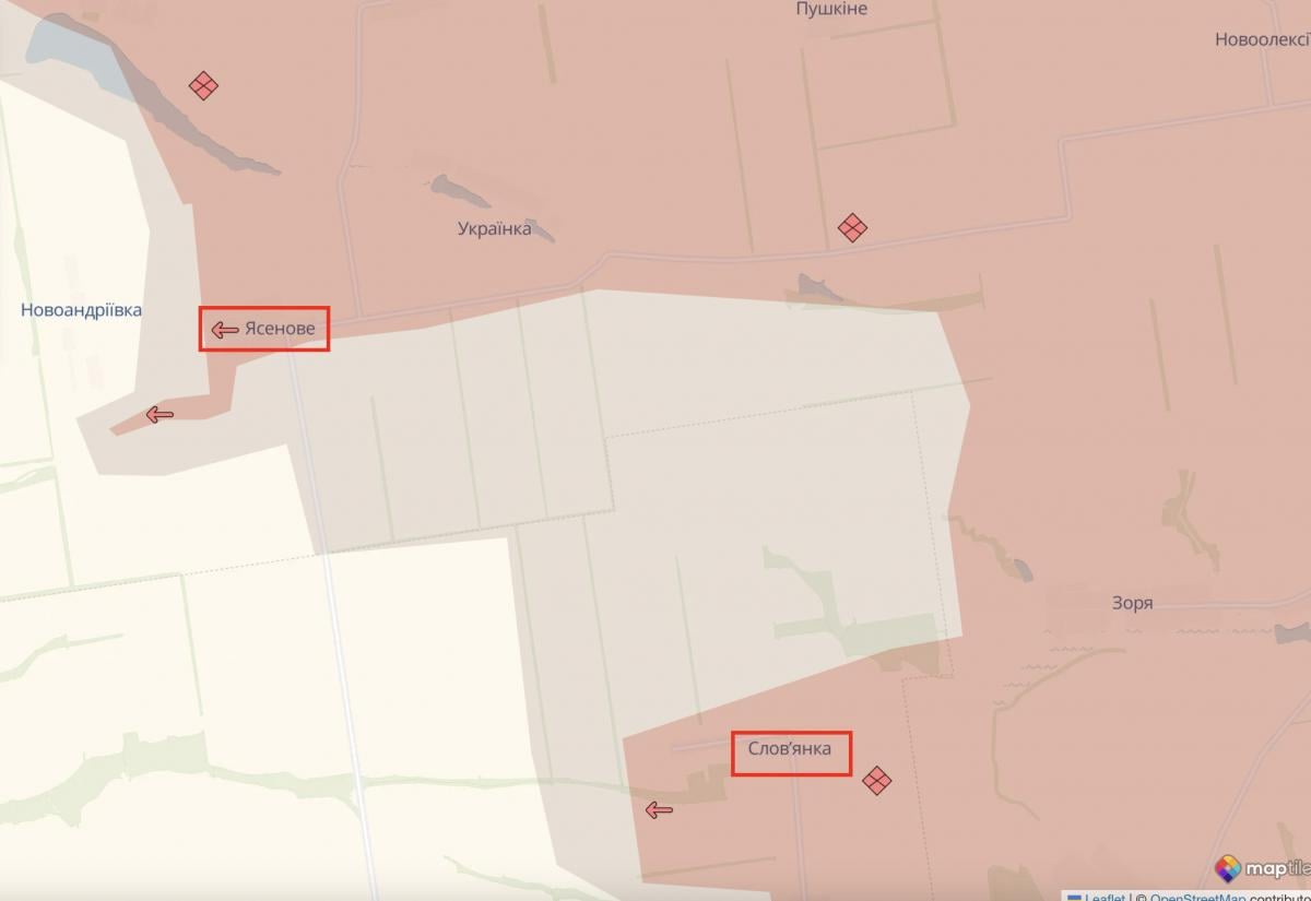 По данным аналитиков, российские войска оккупировали села Песчаное, Славянку и Ясеново, расположенные к югу от Покровска.