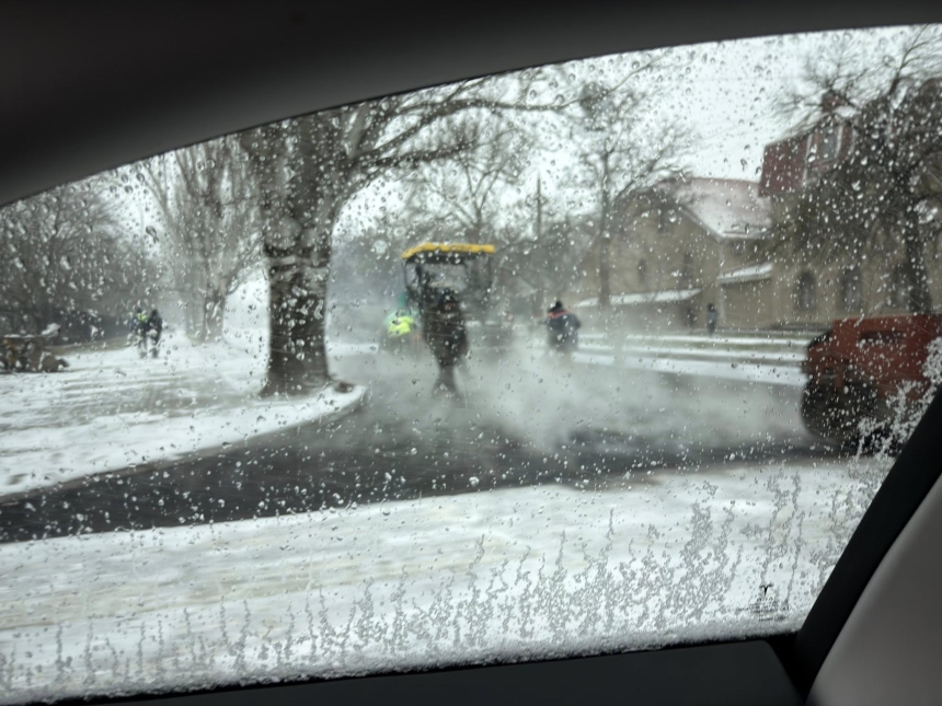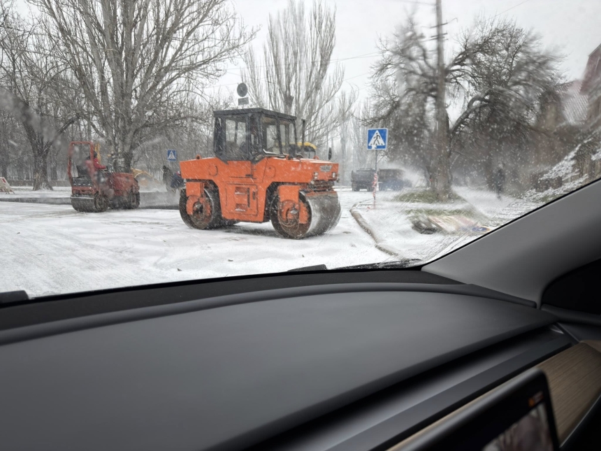 Асфальт в Николаеве укладывали во время снегопада (фото)