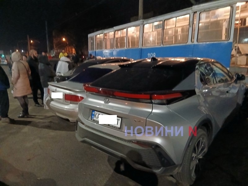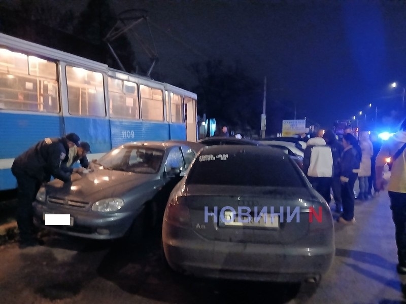 Вечером, 1 декабря, на ул. 6-й Слободской в Николаеве произошло ДТП, в котором получили повреждения 6 автомобилей: Chevrolet Bolt , Daewoo Lanos, Mazda, Toyota и два Audi.