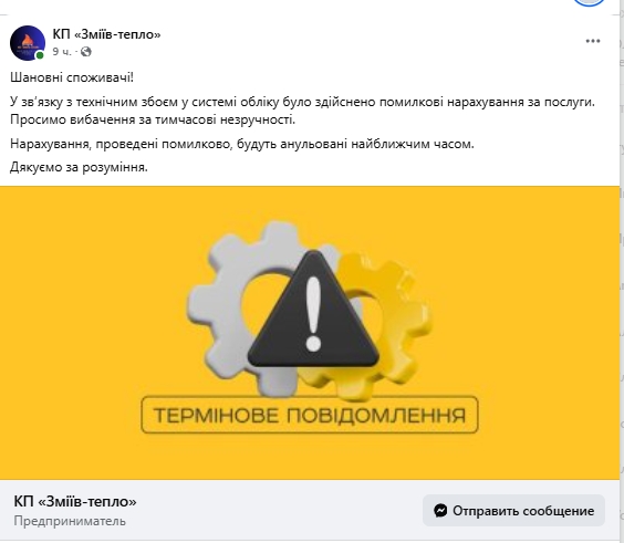 "В связи с техническим сбоем в системе учета были произведены ошибочные начисления за услуги. Приносим извинения за временные неудобства. Начисления, совершенные ошибочно, будут аннулированы в ближайшее время", — говорится на странице предприятия в Facebook.