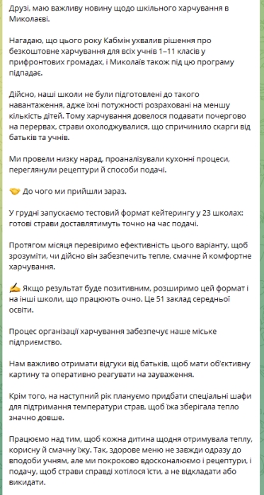 Как ранее сообщалось, все ученики Николаева с 1 сентября 2025 года питаются в школах бесплатно.