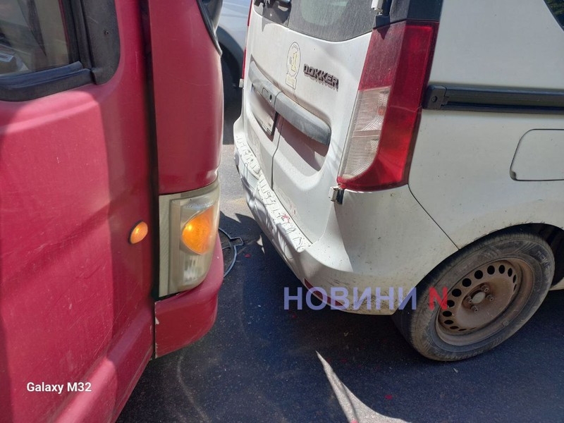 Утром в пятницу, 30 мая, на ул. Кузнечной в Николаеве столкнулись грузовой автомобиль JAC и Renault Dokker.