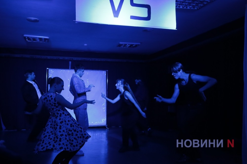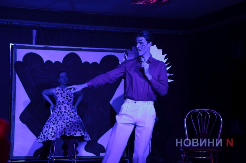 Во вторник, 7 октября, в рамках XIV фестиваля «Homo Ludens» на камерной сцене Николаевского академического художественного драматического театра артистами театра «Veritas» из Киева был показан комедийный спектакль «Ток-шоу». Режиссер – Александра Кравченко.