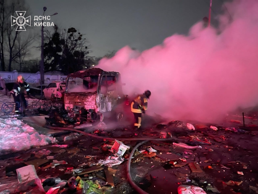 В ночь на 5 февраля в результате очередного обстрела в Оболонском районе столицы произошел пожар возле парковочной площадки: пожарные ликвидировали возгорание двух автомобилей.