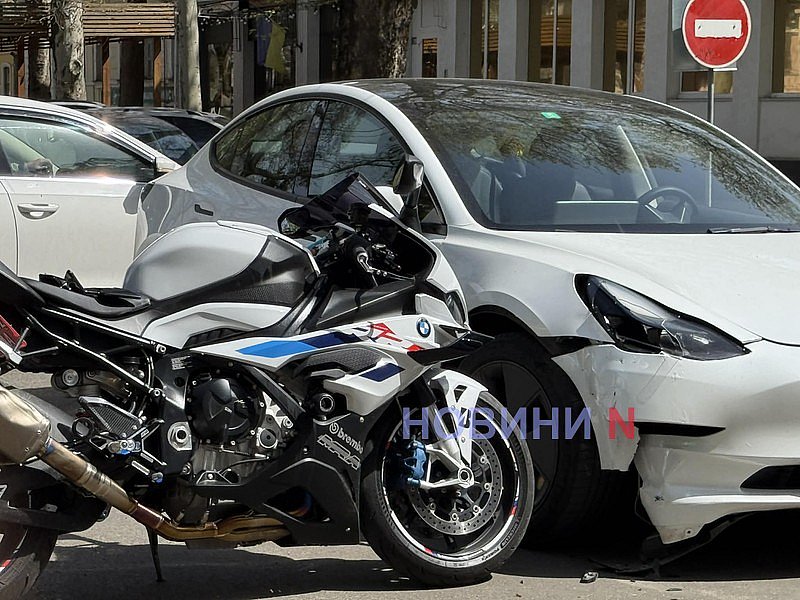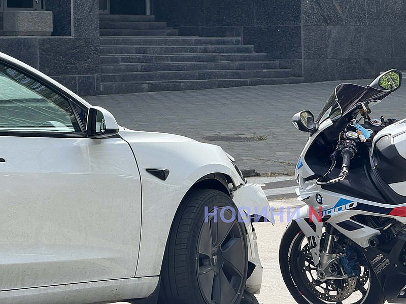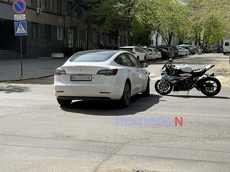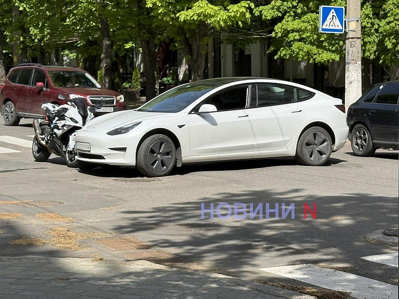 Утром в пятницу, 24 апреля, на пересечении улиц Большой Морской и Героев спасателей в Николаеве столкнулись электромобиль Tesla и мотоцикл.