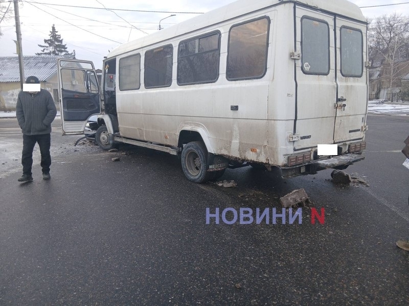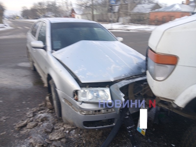 На перекрестке в Николаеве «лоб в лоб» столкнулись микроавтобус и Skoda