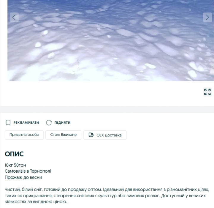 На платформе онлайн-объявлений OLX разместили сразу два необычных предложения — продажу снега.