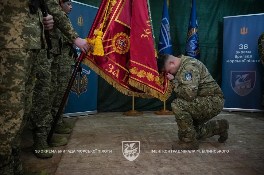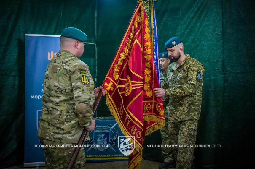 "Полковник Александр Тоненчук торжественно передал Боевое знамя 36 отдельной бригады морской пехоты имени контр-адмирала Михаила Белинского своему преемнику - подполковнику Кириллу Орлюку", - написали они.