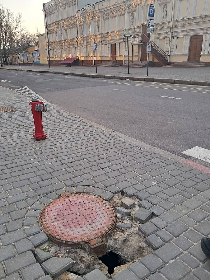 Отметим, что провал образовался у люка, на участке дороги выстеленном тротуарной плиткой в центре города, где часто гуляют горожане. Кроме того рядом с провалом размещен пешеходный переход.
