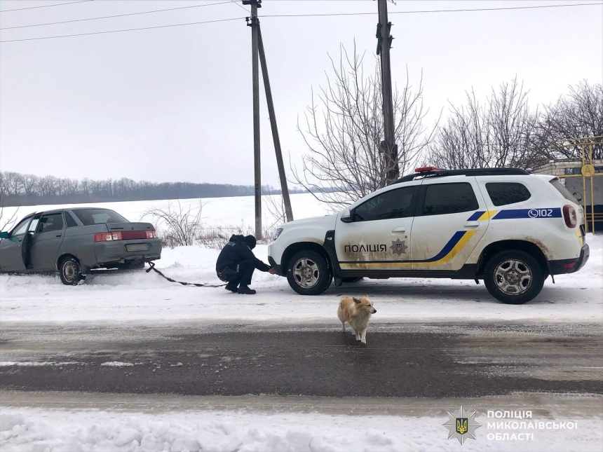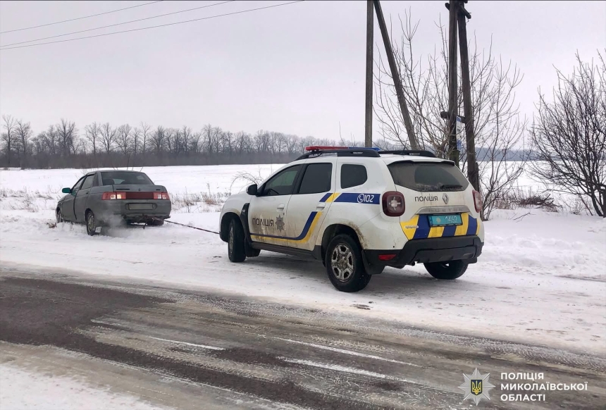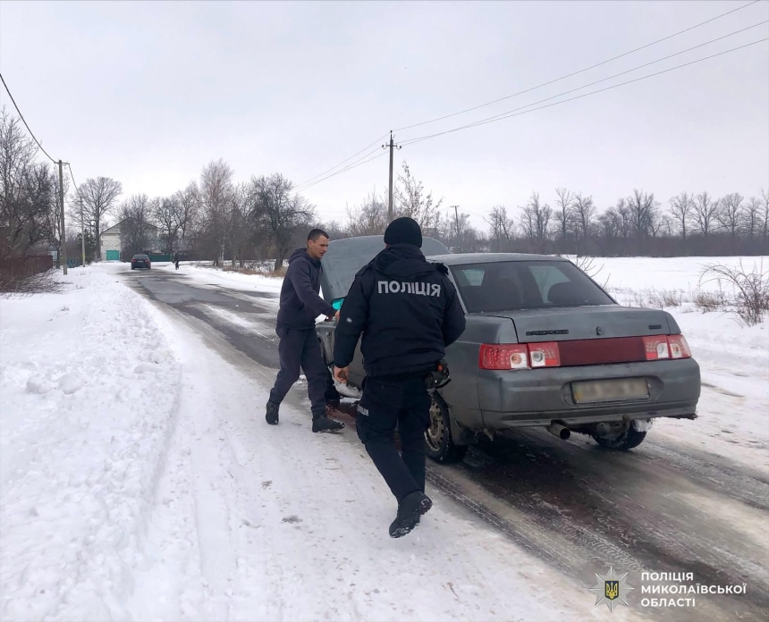 Полицейские помогли водителю выбраться из снежной ловушки в Николаевской области