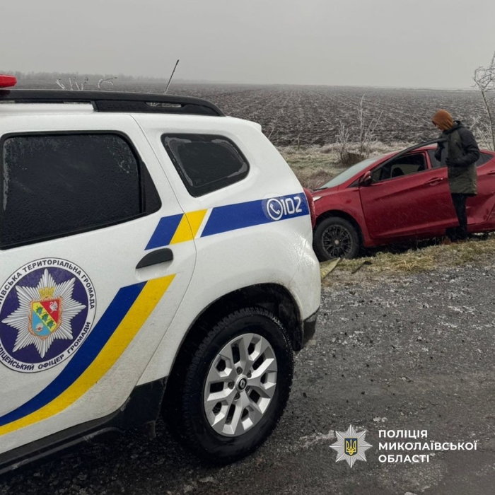 В Коблевской общине полицейский офицер совместно с местными жителями помог водителям, которые из-за сложных погодных условий съехали в кювет.