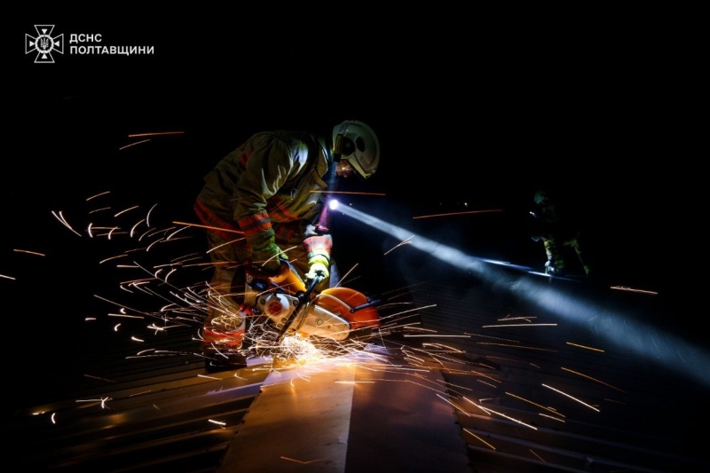 В результате российской атаки на Полтаву возник пожар на складе готовой продукции одного из местных предприятий. Огонь охватил около 1500 кв. м помещения.