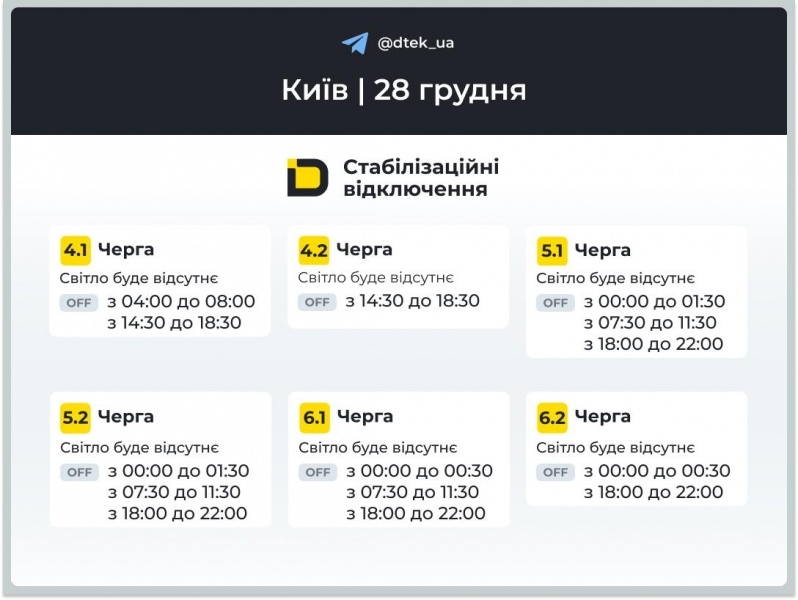 Как сообщает ДТЭК, на правом берегу Киева применяются плановые графики отключений света, тогда как на левом берегу всё ещё действуют экстренные отключения из‑за перегрузки повреждённых сетей.