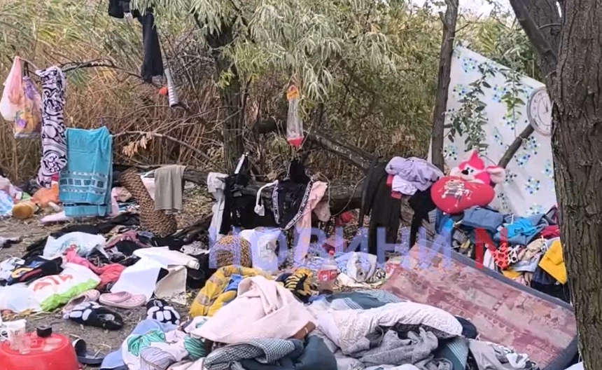 На намывской косе в Николаеве неизвестные организовали себе квартиру под открытым небом: здесь есть спальня, кухня и даже ванна.