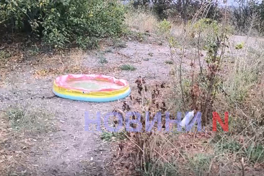 А с другой стороны — розовый надувной детский бассейн. Он, видимо, является ванной.