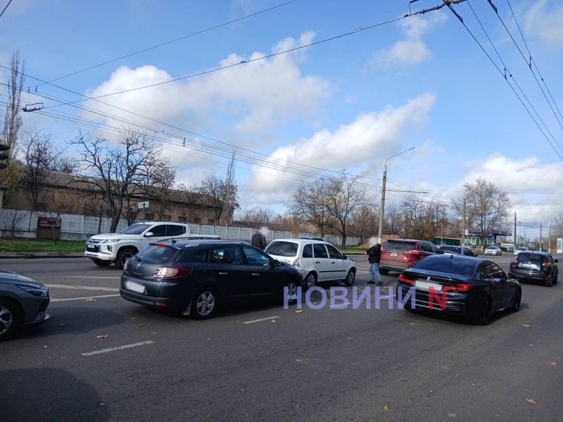 В Николаеве 15 ноября на проспекте Героев Украины столкнулись три автомобиля: Renault, ВАЗ и Ford.