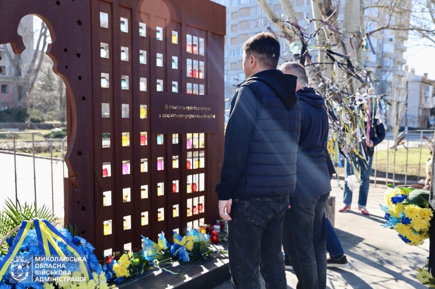 Все присутствующие почтили память погибших минутой молчания, после чего возложили цветы к мемориалу в честь Защитников и Защитниц Украины.
