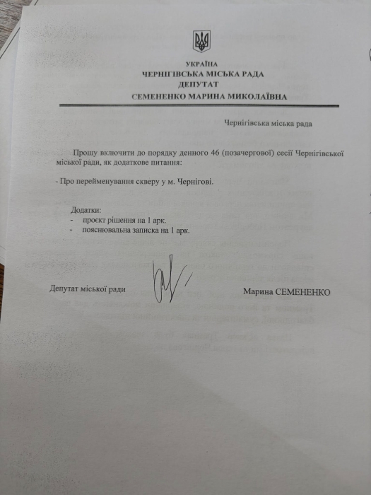 В объяснительной записке к решению указано, что переименование направлено на "увековечение выдающихся политических лидеров современности" и "привлечение международного внимания к восстановлению города-героя Чернигова".
