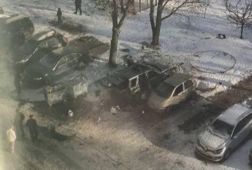 В соцсетях также публикуют фото с места инцидента - взорвавшийся автомобиль был припаркован во дворе жилых домов.