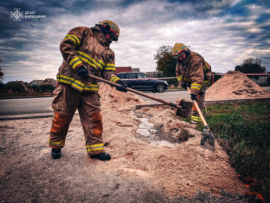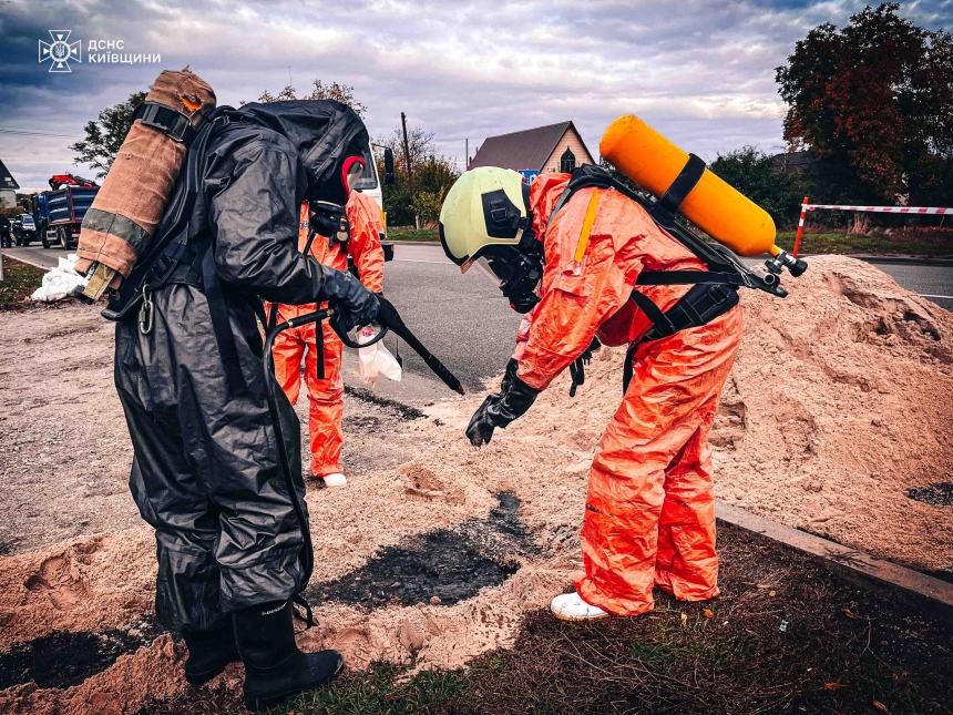 В Киевской области спасатели ликвидировали разлив агрессивного химического вещества.