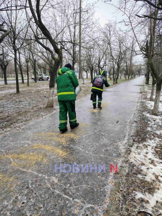 В тоже время Николаевский городской совет и КП «Николаевские парки» сообщают, что дорожники и коммунальные службы работают в усиленном режиме. Отмечается, что основные транспортные магистрали обрабатываются противогололедными материалами. Особое внимание уделяется спускам и подъемам, мостам, транспортным кольцам, а также парковым и пешеходным зонам, скверам и остановкам общественного транспорта. Работают бригады КП «ЭЛУ автодорог». Также организовано ночное дежурство — диспетчеры и бригады будут оперативно обрабатывать дороги при необходимости.