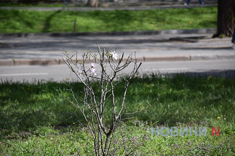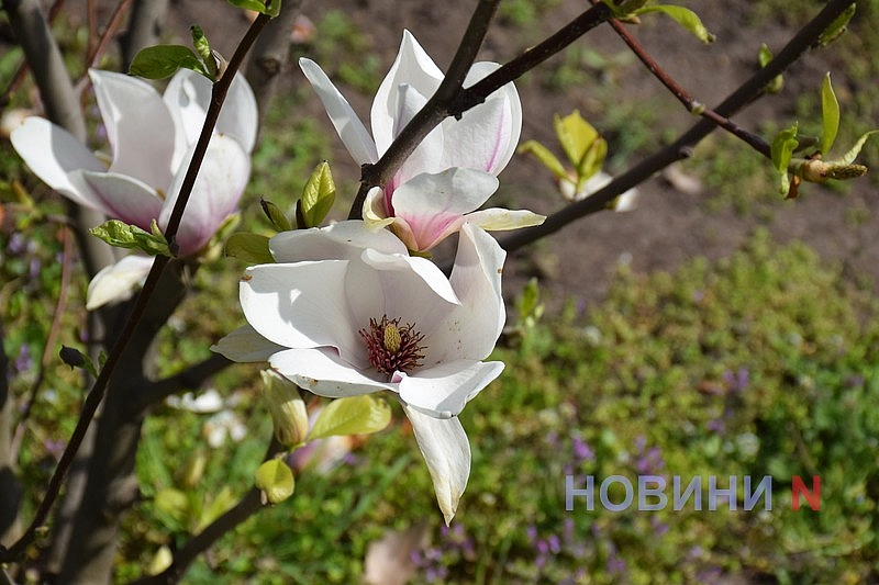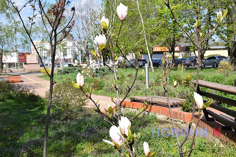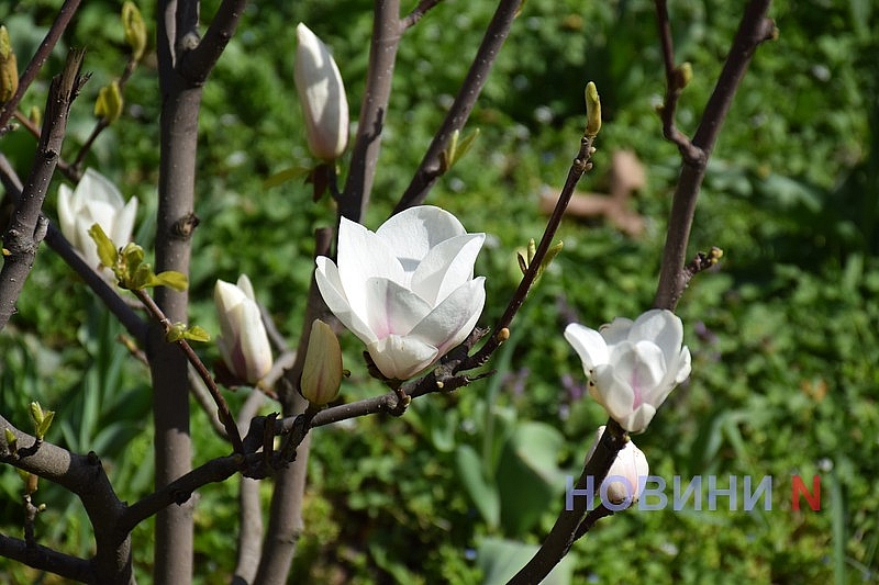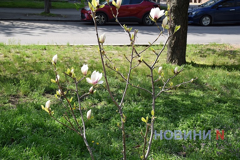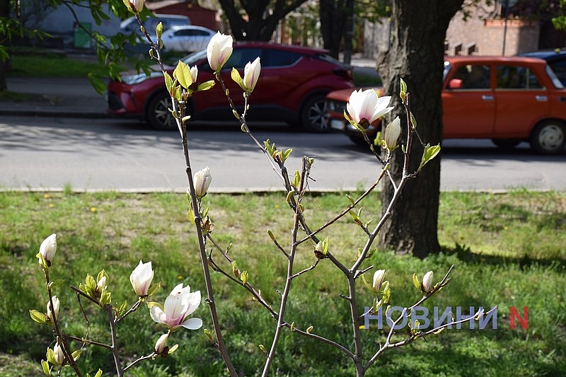 Вслед за сливой Писсарди и разноцветными тюльпанами, в Николаеве зацвела и экзотическая магнолия.