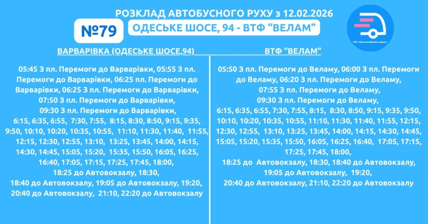 «Со завтра, 12.02.2026, на маршруте №79 временно меняется расписание движения. Понимаем, что эти изменения могут вызвать неудобства. К сожалению, из-за неблагоприятных погодных условий часть транспортных средств вышла из строя и требует ремонта. Наши специалисты уже работают над устранением неисправностей», – сказано в сообщении.