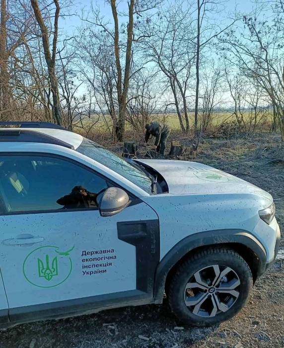 Инспекторы Пункта экологического контроля №2 зафиксировали факт незаконной порубки деревьев в полезащитной лесной полосе возле села Романова Балка Первомайского района Николаевской области.
