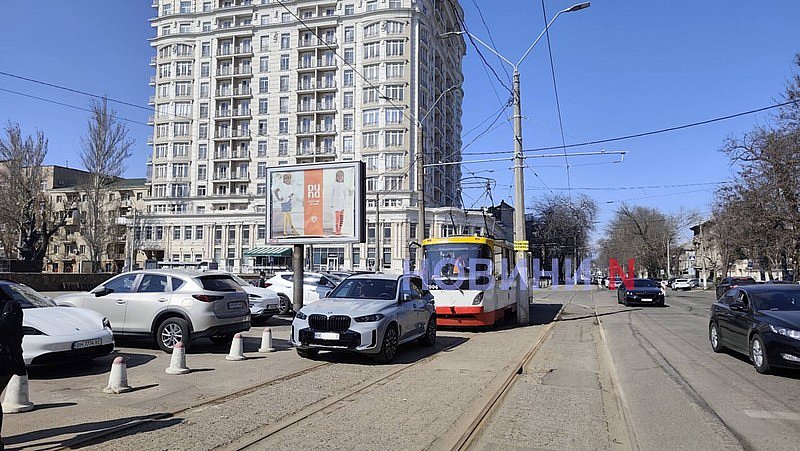 В Одессе автомобиль с николаевскими номерами заблокировал движение трамваев