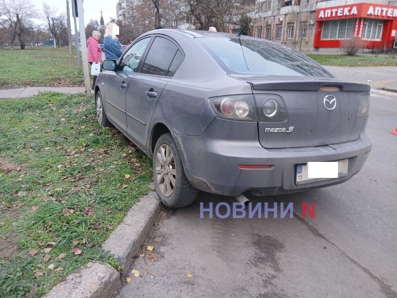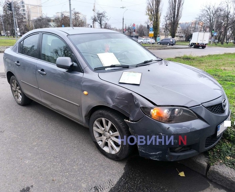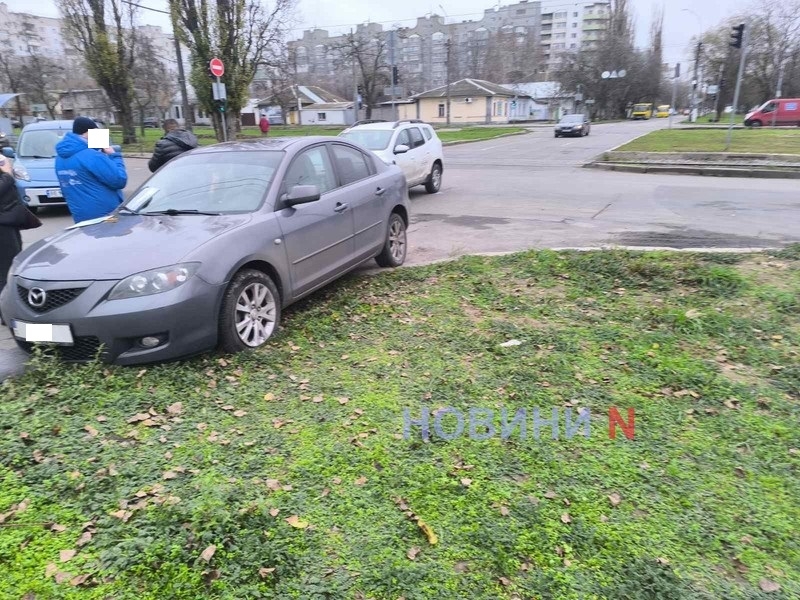 В центре Николаева «Мазда» вылетела на газон после столкновения с кроссовером