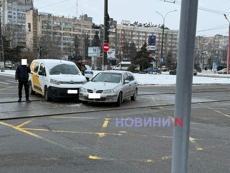 Утром 3 февраля, на ул. Кропивницкого (Потемкинской) в Николаеве столкнулись фургон «Укрпочты» Citroen и легковой автомобиль «Ниссан».