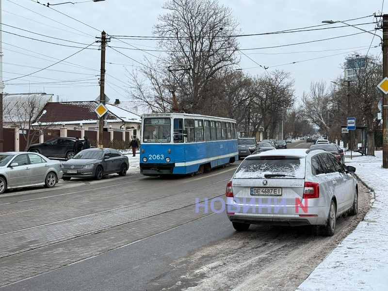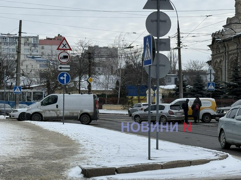 В центре Николаева попал в ДТП фургон «Укрпочты»: заблокировано движение трамваев