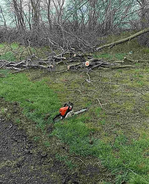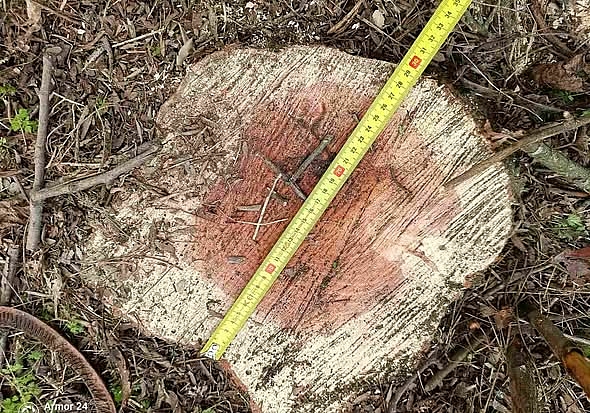 Кроме того, они также установили повреждение двух деревьев породы "Ясень". Обрезка их скелетных ветвей привела к ослаблению общего состояния, хотя рост не был прекращен. Диаметры деревьев составляют 19 см и 22 см.
