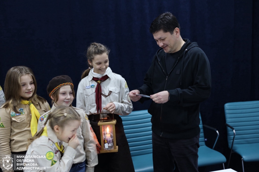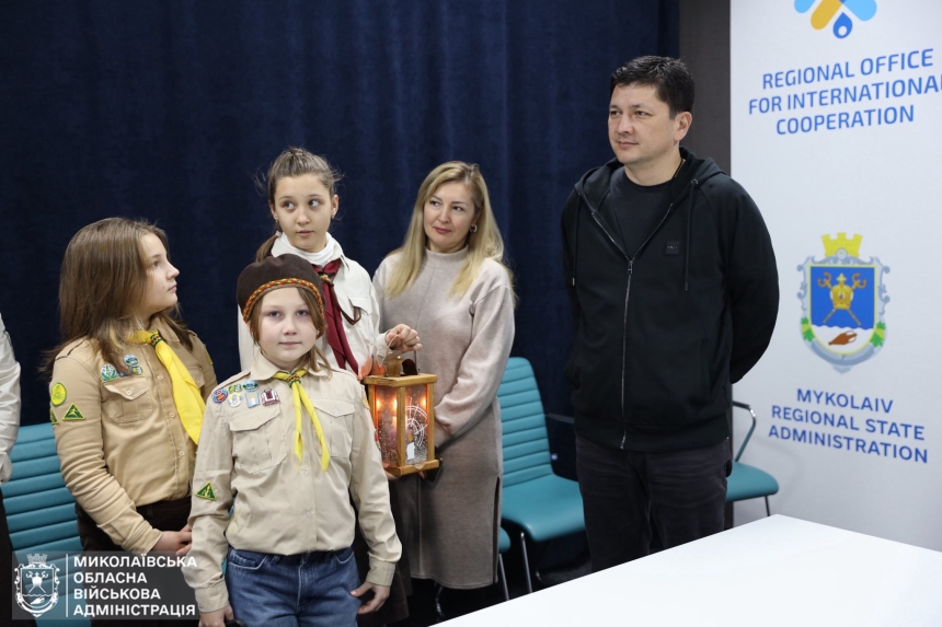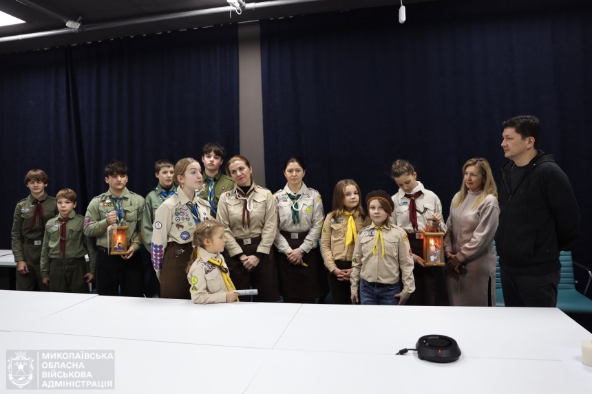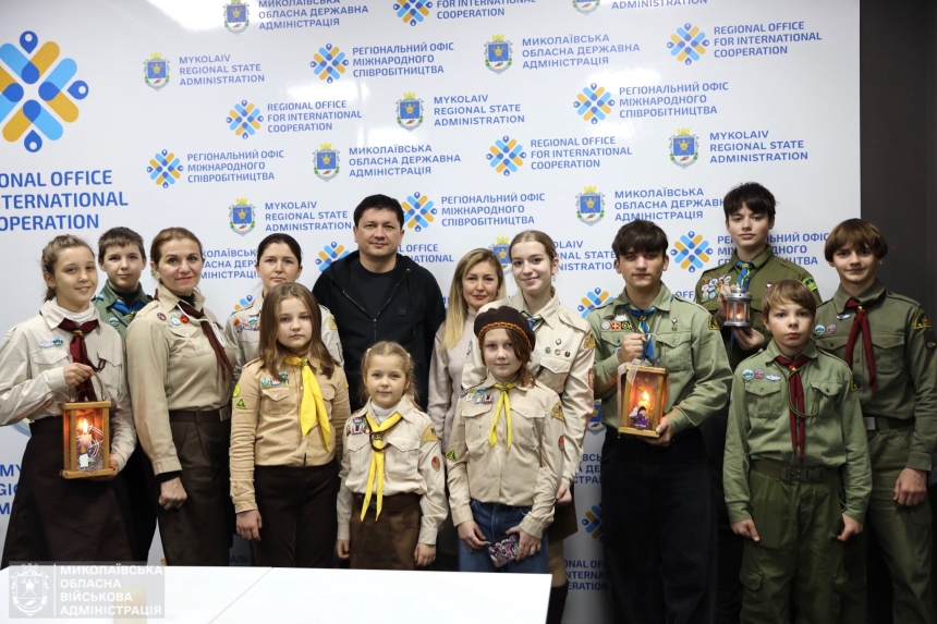 9 декабря николаевские пластуны передали начальнику Николаевской областной военной администрации Виталию Киму Вифлеемский огонь мира - символический огонь, который ежегодно путешествует по миру в канун Рождества