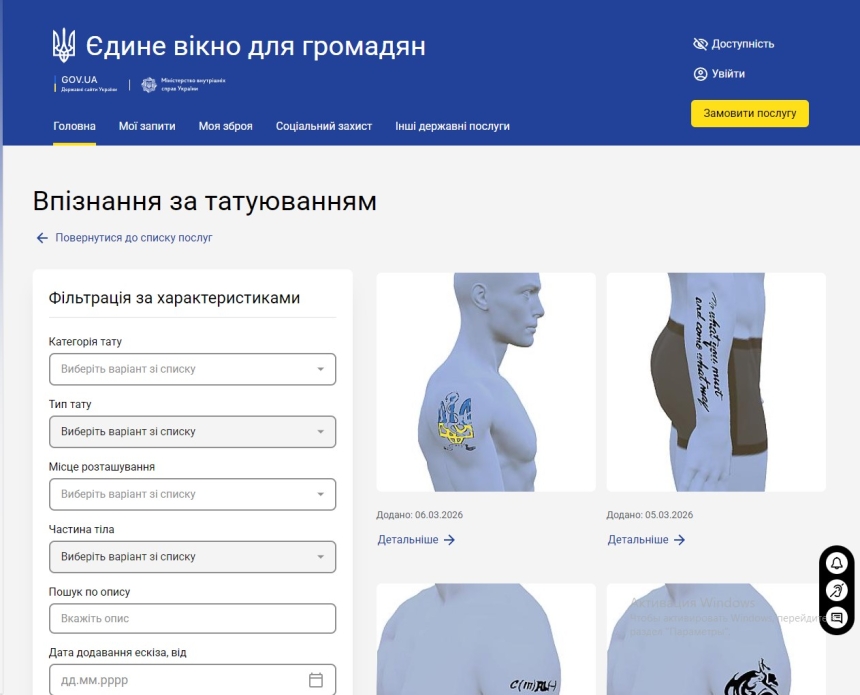 Министерство внутренних дел Украины запустило на сайте новый онлайн-раздел «Опознание по татуировке», созданный для идентификации пропавших без вести при особых обстоятельствах лиц.