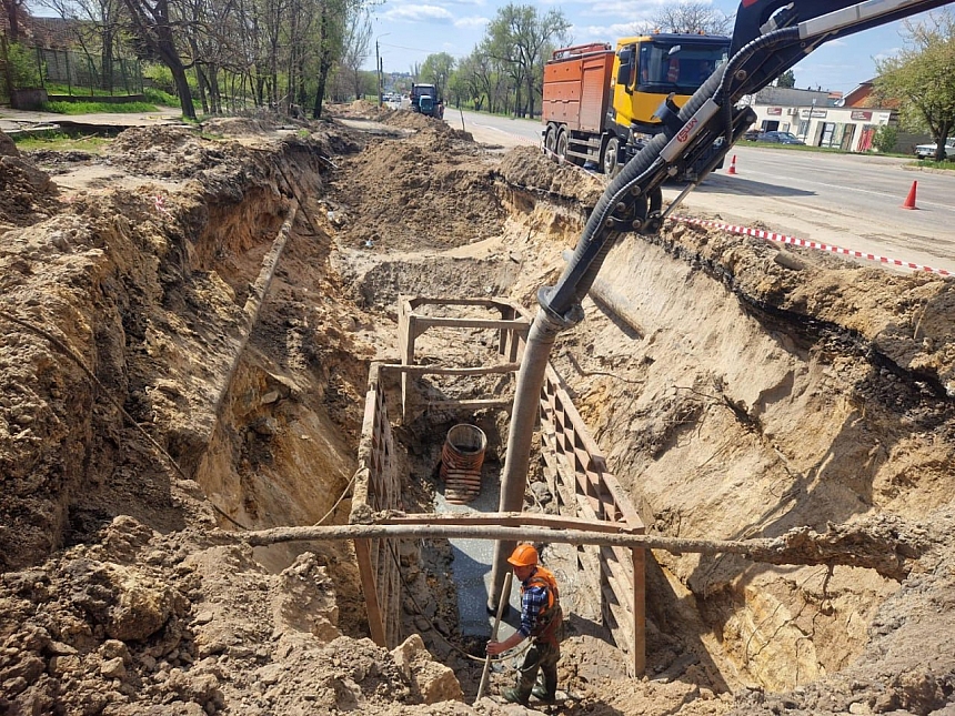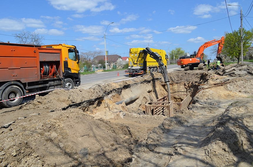 Чтобы горожане как можно меньше испытывали дискомфорт от ограничения движения и ремонтных работ, на объекте задействована многочисленная специализированная техника. Мощный экскаватор, копающий траншеи на значительной глубине. Спецавтомобиль для удаления стоков и ила из котлована. Тракторы и ремонтные автомобили», - говорится в сообщении.