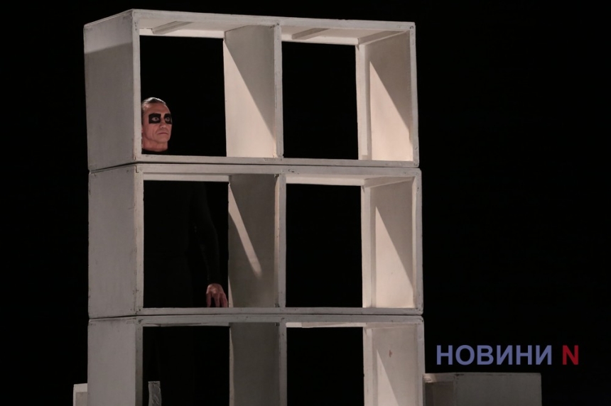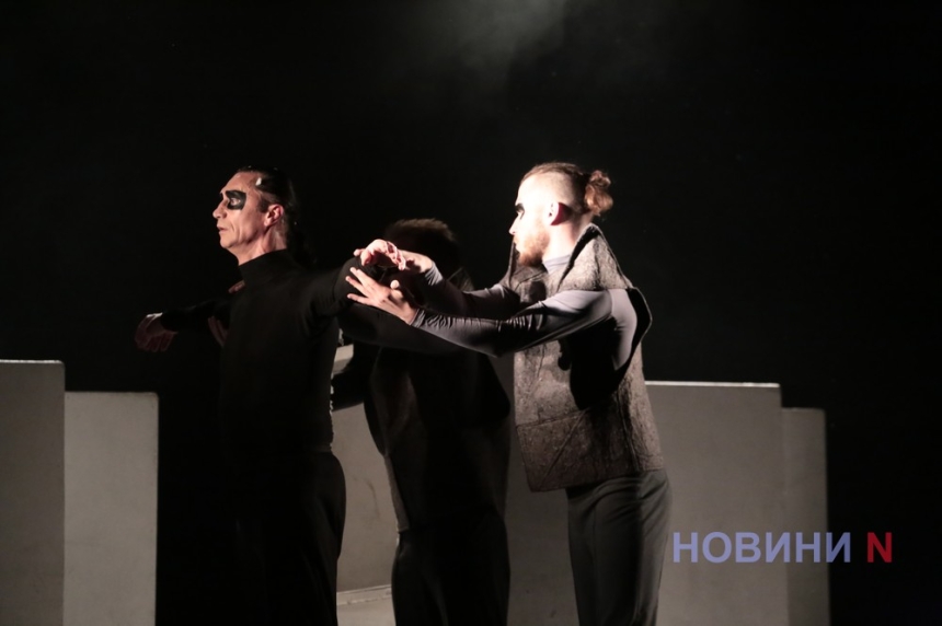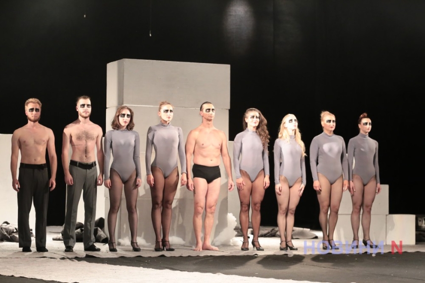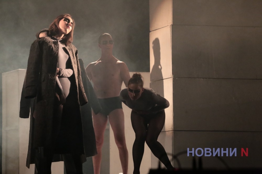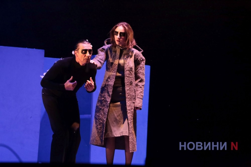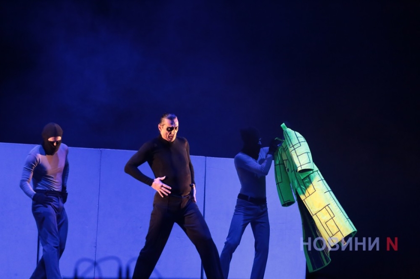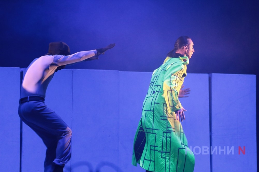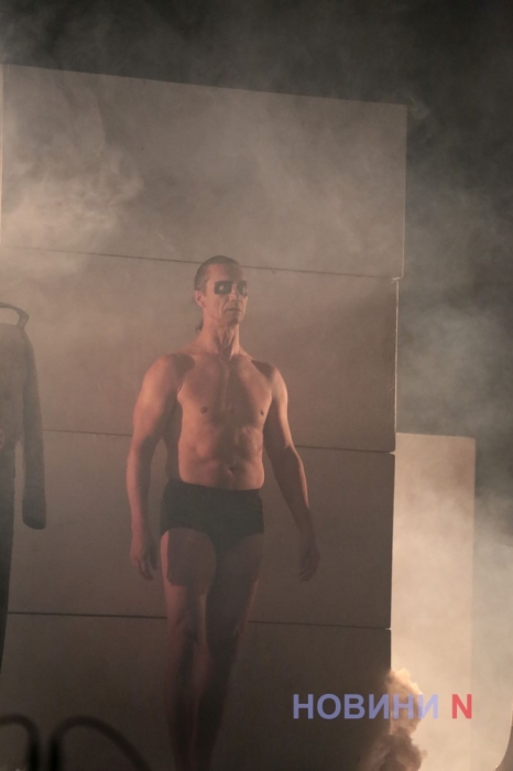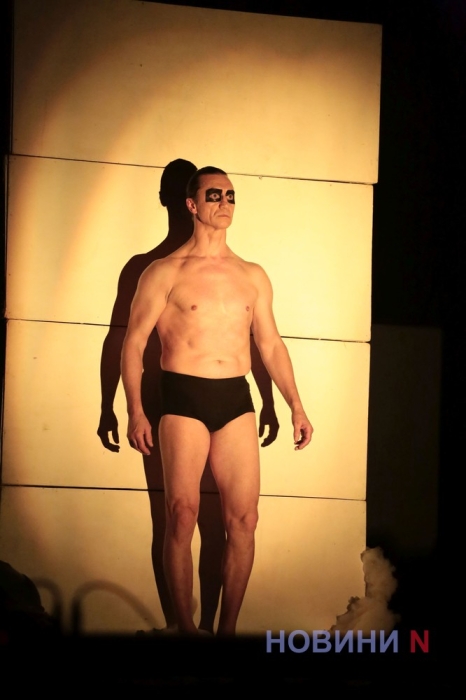 Во вторник, 7 октября, в рамках XIV фестиваля «Homo Ludens», на большой сцене Николаевского академического художественного драматического театра артистами Сумского национального академического театра драмы и музыкальной комедии имени Щепкина был показан пластический перфоманс «Шинель». Режиссер – Артем Вусик.