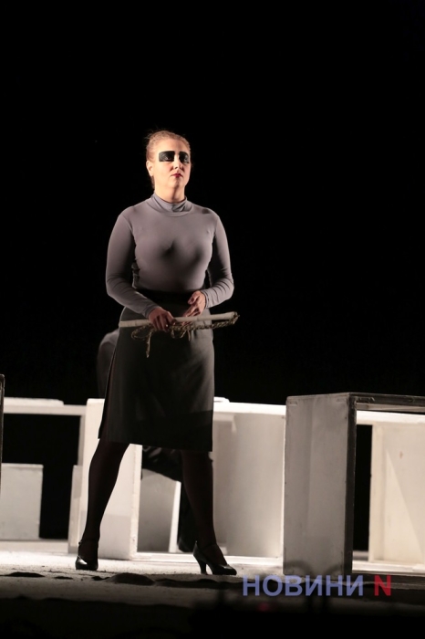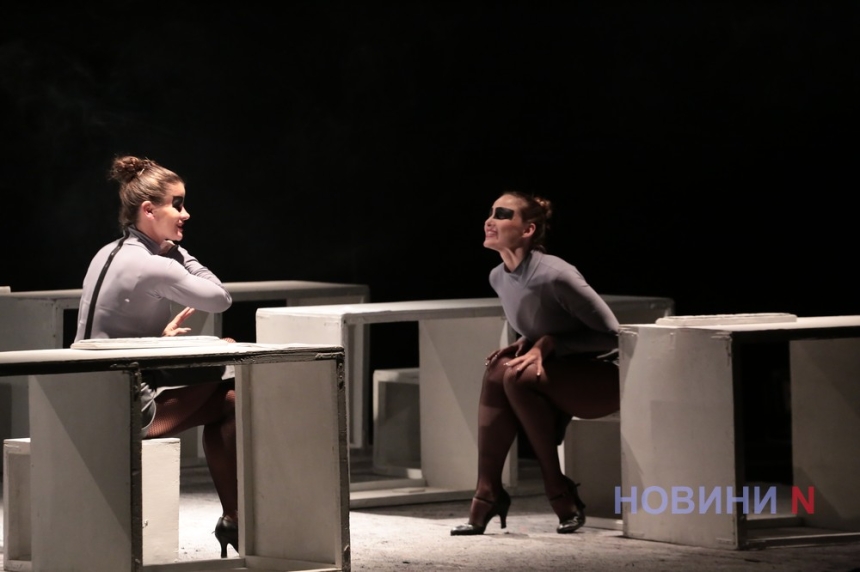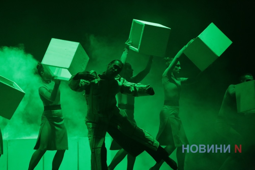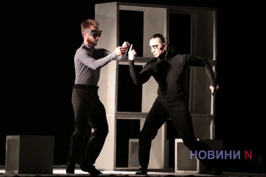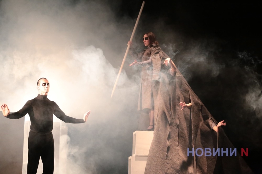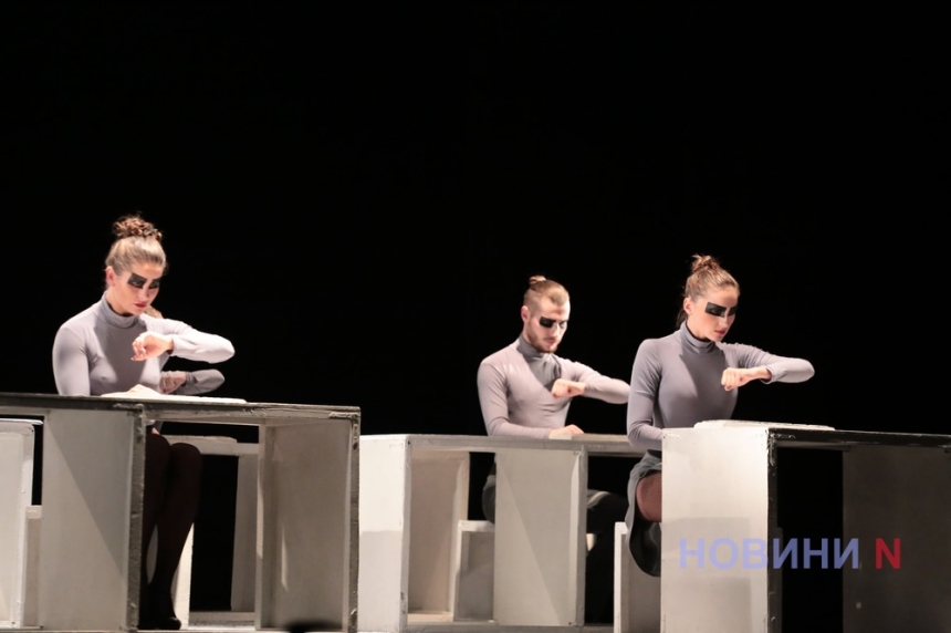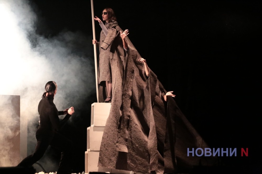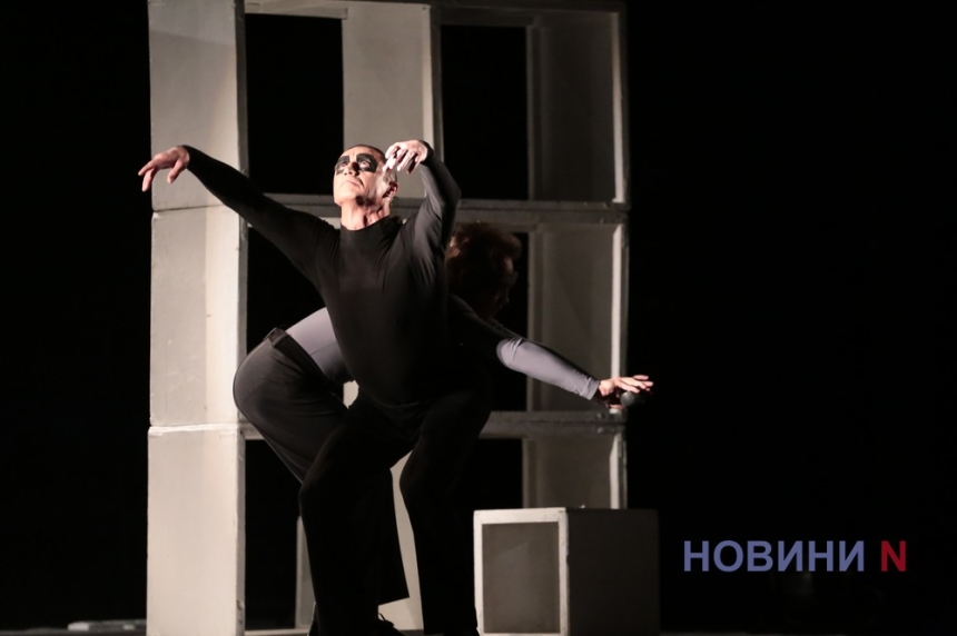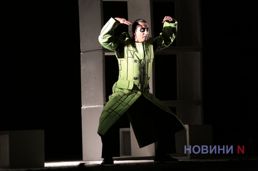 Во вторник, 7 октября, в рамках XIV фестиваля «Homo Ludens», на большой сцене Николаевского академического художественного драматического театра артистами Сумского национального академического театра драмы и музыкальной комедии имени Щепкина был показан пластический перфоманс «Шинель». Режиссер – Артем Вусик.