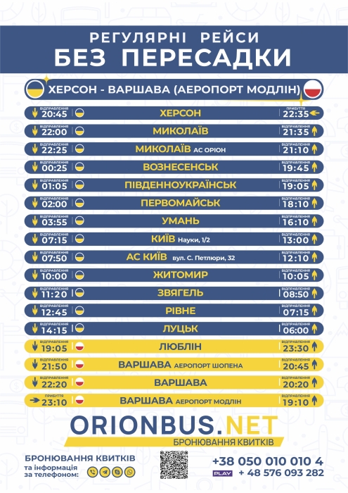 Известный николаевский перевозчик ORIONBUS открывает новый маршрут — теперь можно будет быстро, комфортно и без пересадок добраться в аэропорты Варшавы.